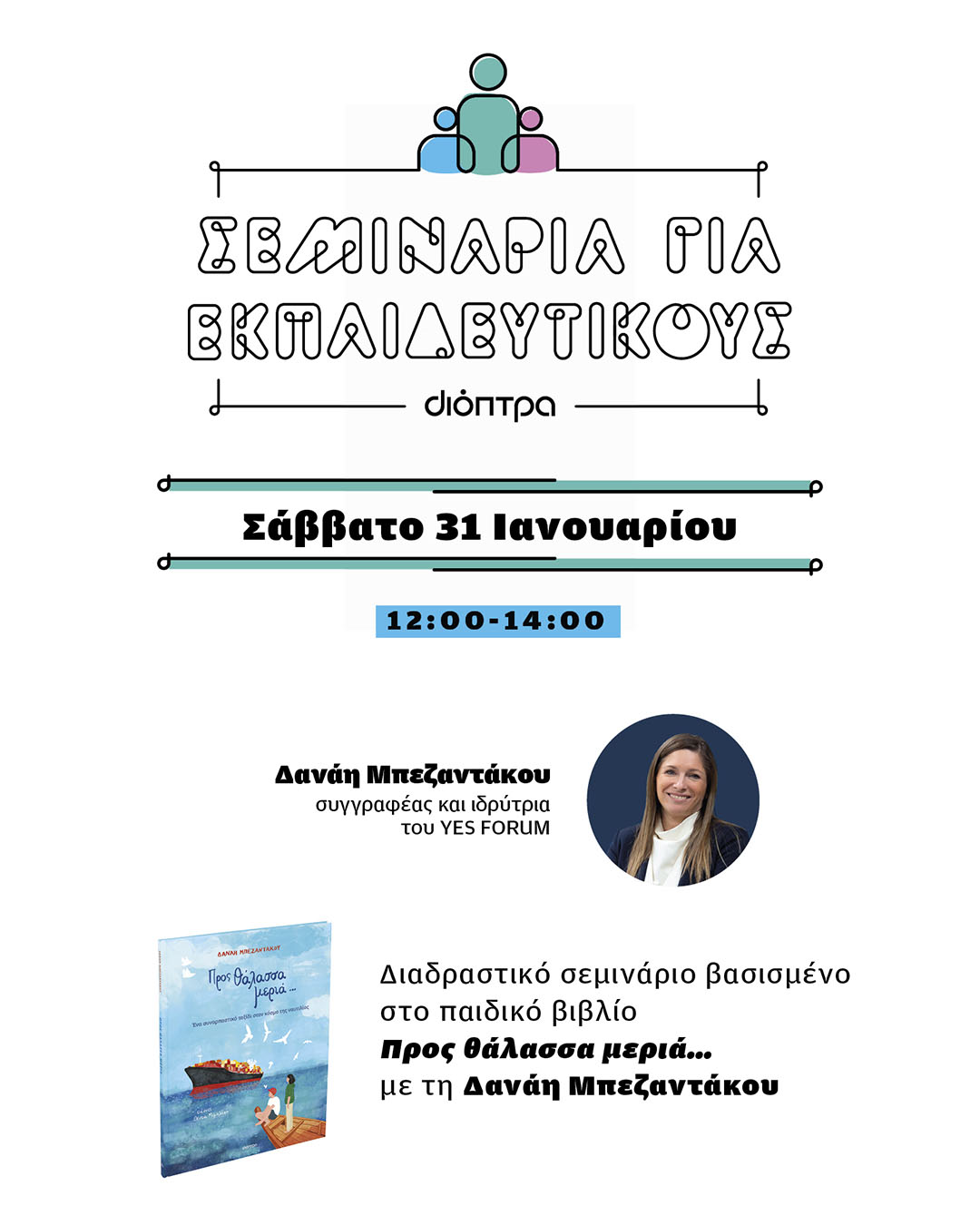 Είστε εκπαιδευτικοί ή επαγγελματίες που ασχολείστε με παιδιά; Αγαπάτε τη λογοτεχνία και προσπαθείτε διαρκώς να καλλιεργήσετε τη φιλαναγνωσία εντάσσοντας το παιδικό βιβλίο στην καθημερινή διδακτική πράξη; Τότε, η σειρά Σεμιναρίων για Εκπαιδευτικούς των εκδόσεων Διόπτρα σας δίνει την ευκαιρία να έρθετε σε επαφή με πρακτικά εργαλεία και βιωματικές τεχνικές που θα σας βοηθήσουν να αξιοποιήσετε δημιουργικά το παιδικό βιβλίο, μεταμορφώνοντας την εκπαιδευτική διαδικασία και ενισχύοντας παράλληλα την αγάπη των παιδιών για το διάβασμα.