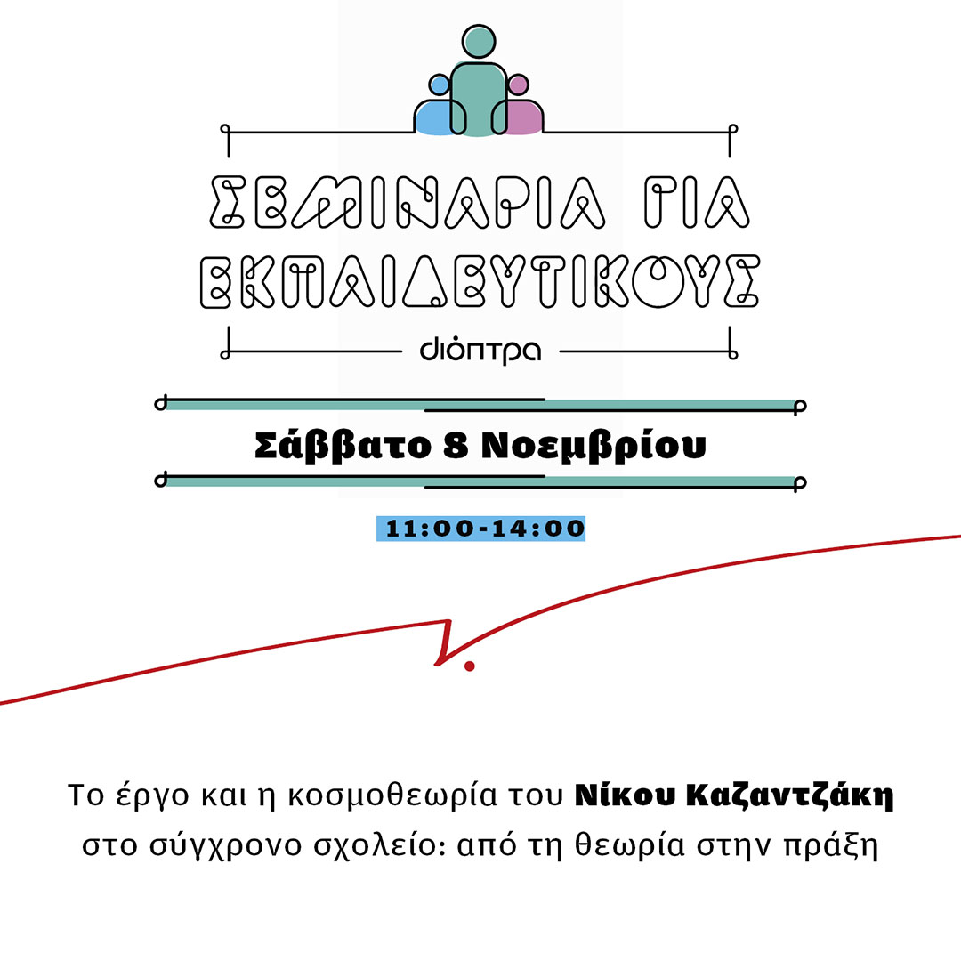 Ο δεύτερος κύκλος σεμιναρίων για εκπαιδευτικούς από τις εκδόσεις Διόπτρα ολοκληρώνεται με ένα σεμινάριο αφιερωμένο στον Νίκο Καζαντζάκη.
