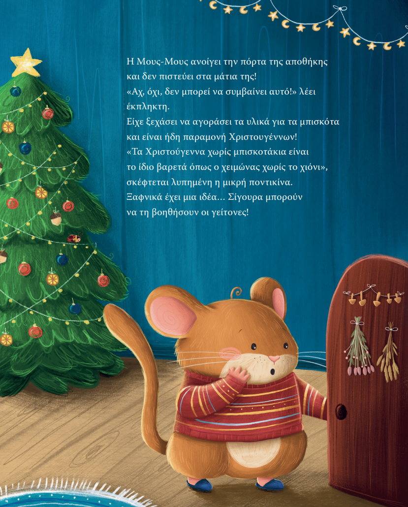 Ηλικίες: 4+Η μικρή ποντικίνα θέλει να ετοιμάσει χριστουγεννιάτικα μπισκότα για όλα τα ζωάκια της Γέρικης Φουντουκιάς! H αποθήκη όμως είναι άδεια…